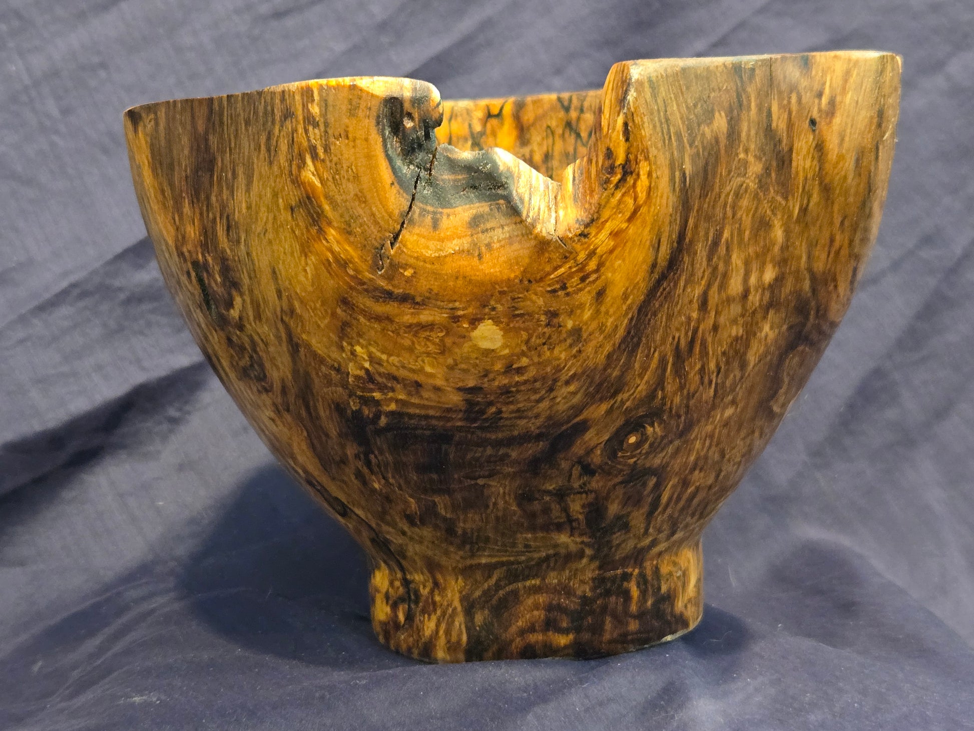 This is a stunning, heavily spalted maple bowl with a unique partial live edge. The sculpted foot, from which the growth-rings emanate, lifts the bowl to increase the perception of size. Teak oil provides a soft-luster finish.